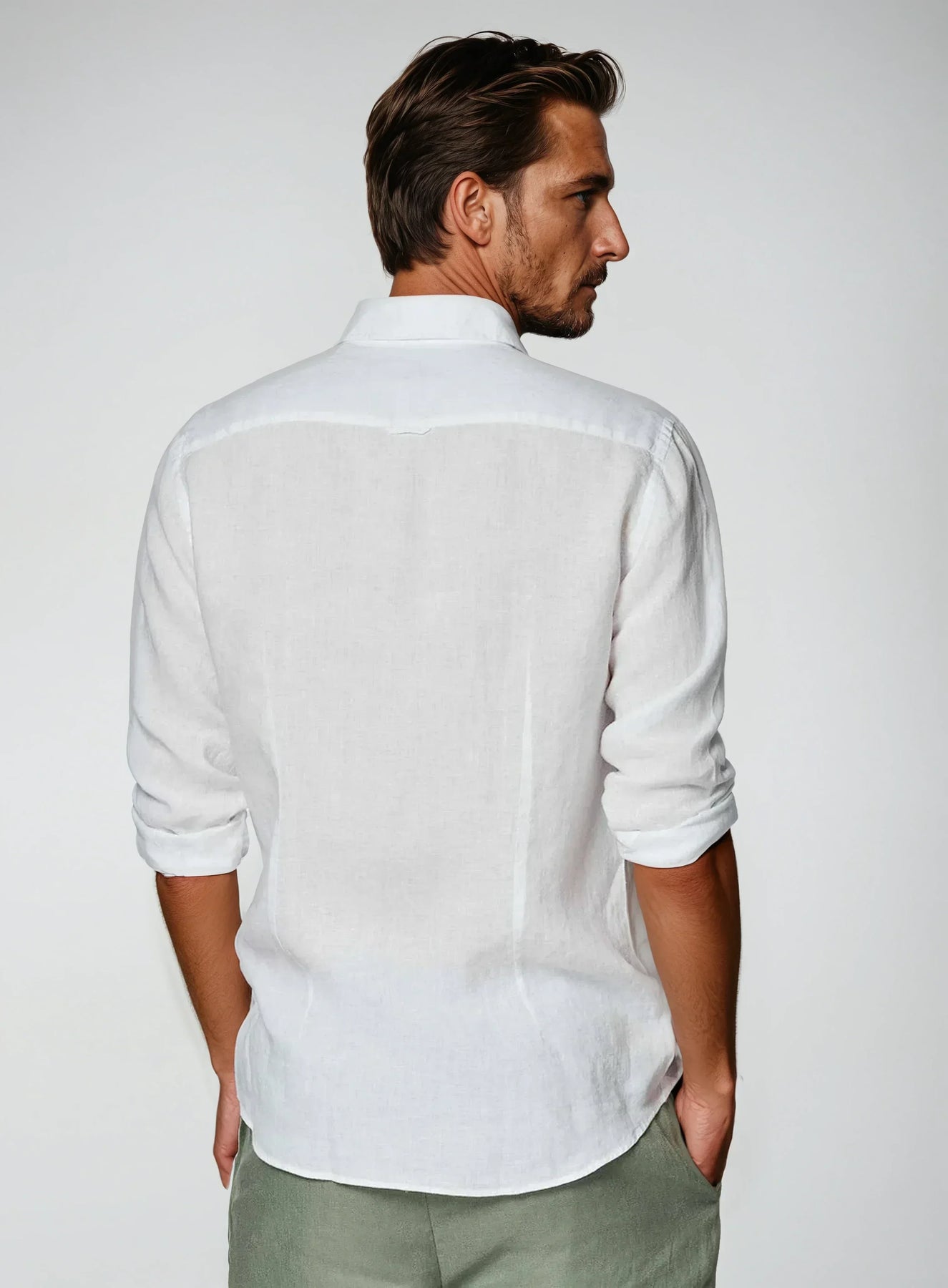 Objevte nadčasovou eleganci Lněné Košile Grand Arbres v Bílé. Tato rafinovaná košile kombinuje komfort, luxus a univerzální bílý odstín, ideální pro muže, kteří hledají stylový a prodyšný kousek oblečení. Ideální pro jakékoli příležitosti, od neformálních po poloformální.