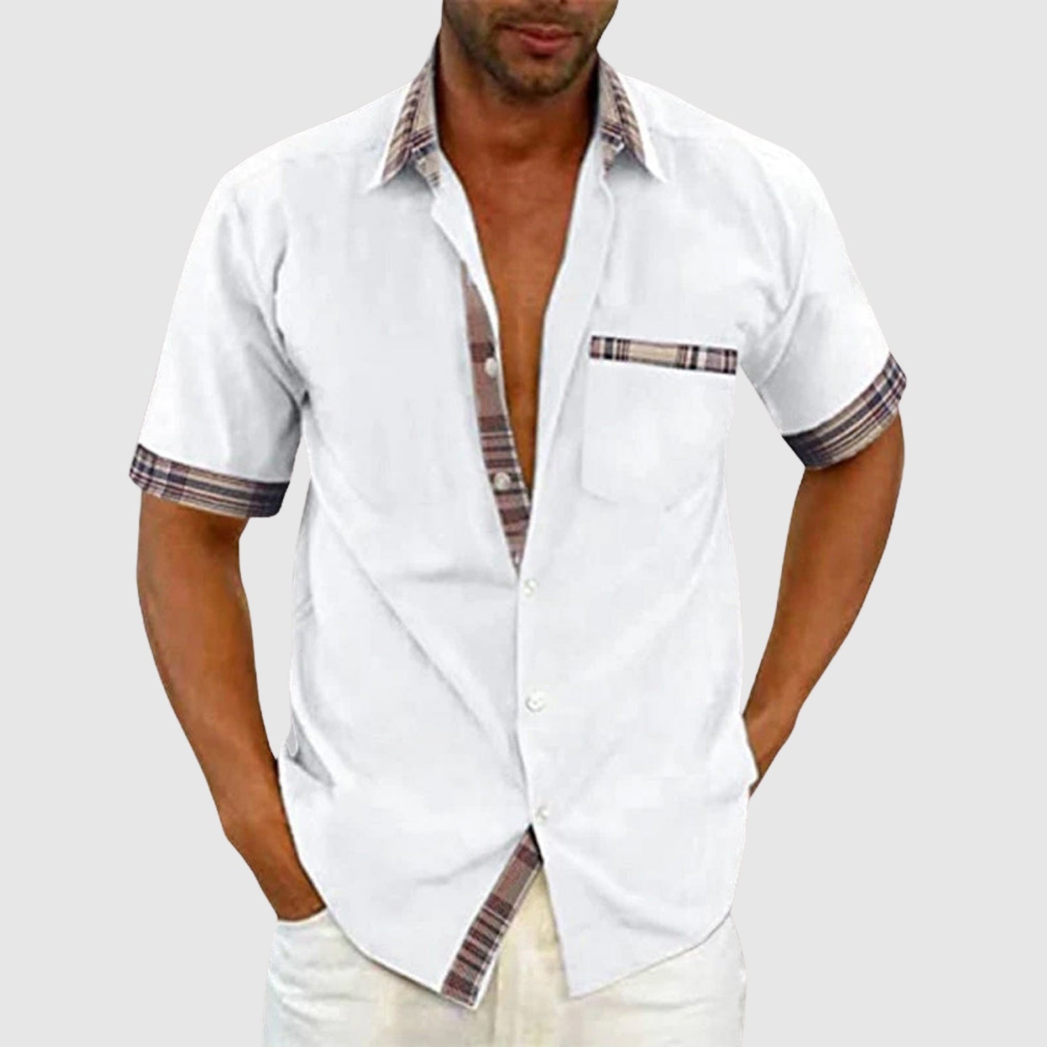 Naše ležérní košile s krátkým rukávem je ideálním kouskem pro slunečné dny, procházky městem nebo večery v uvolněném stylu. Díky jemným designovým detailům na límci a kapse kombinuje nenucenou eleganci s naprostým pohodlím. Perfektní pro ty, kteří ocení jednoduchost s nádechem osobitosti.