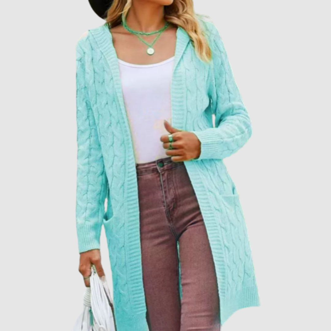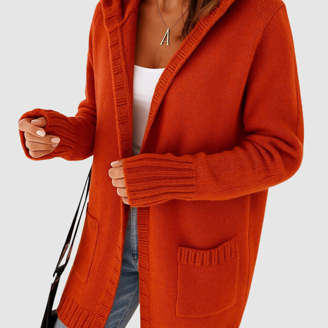 Tento cardigan je ideální volbou pro ženy, které hledají pohodlný a stylový kousek do šatníku. Díky volnému střihu a měkkému materiálu nabízí komfort při každodenním nošení, zatímco kapuce dodává ležérní a moderní vzhled.