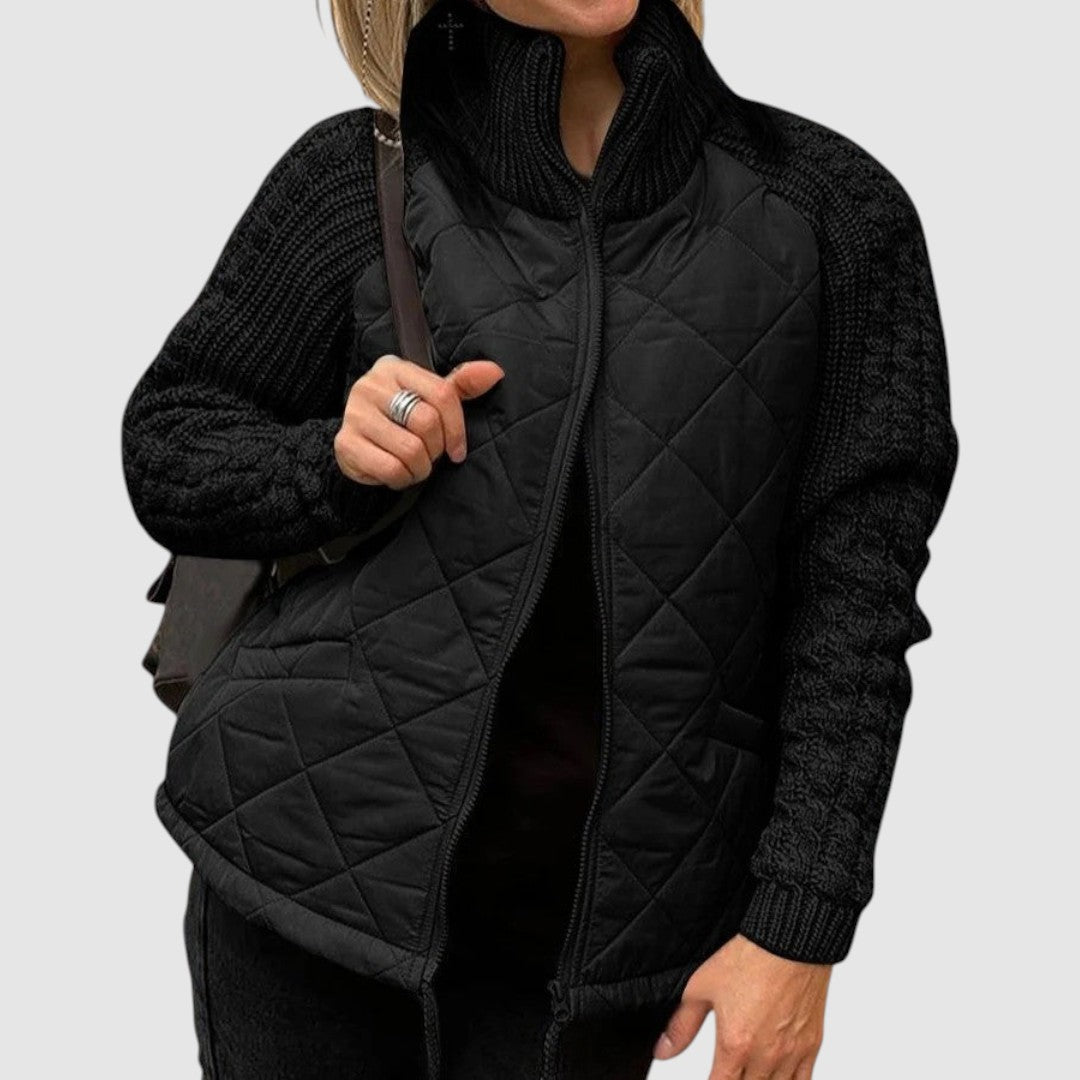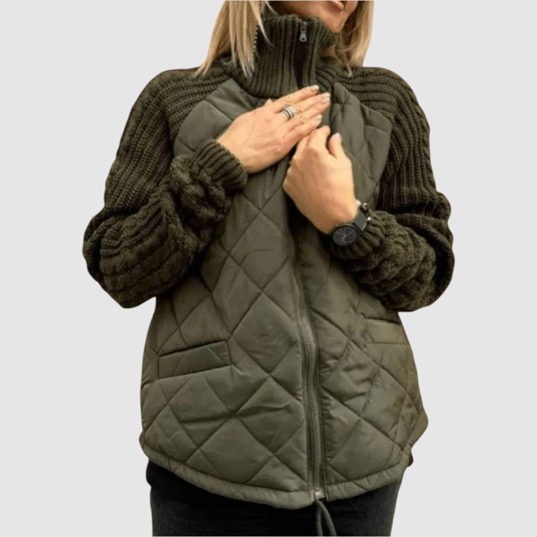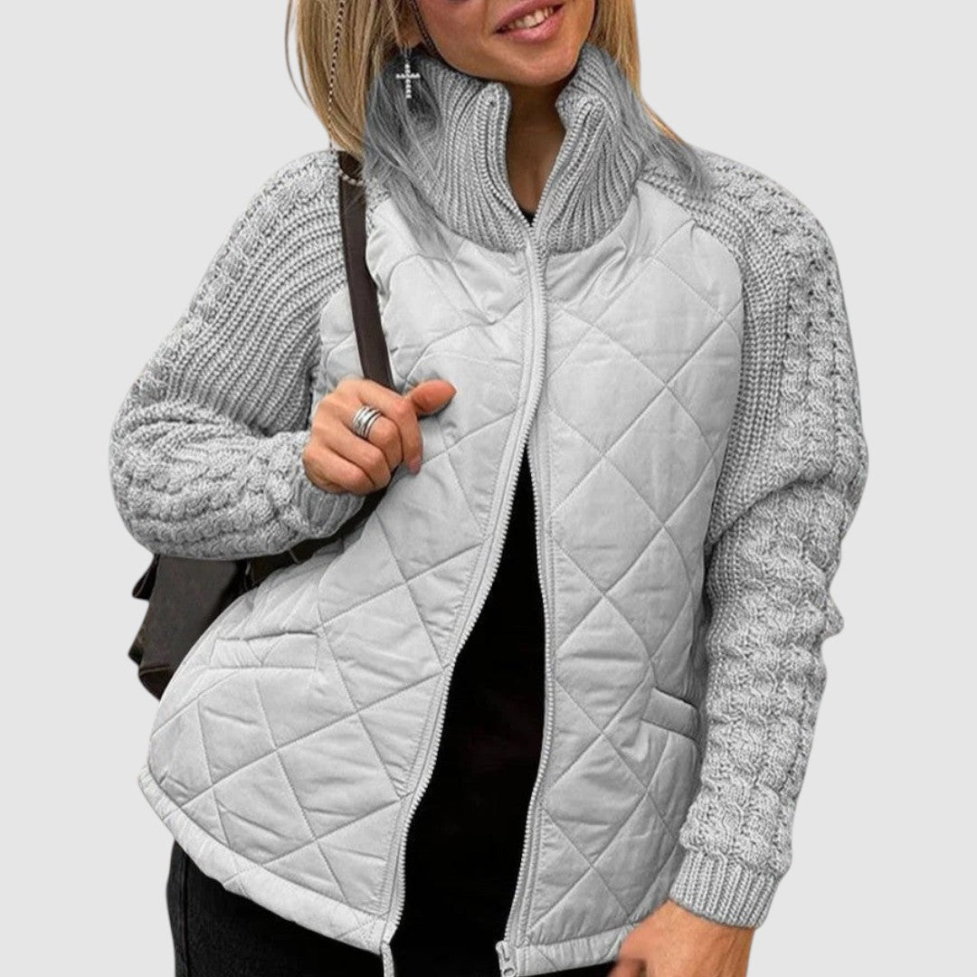 Hybridní Bunda s Prošívaným Tělem a Pletenými Rukávy