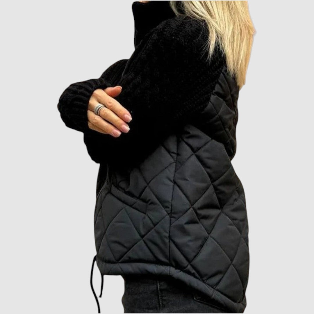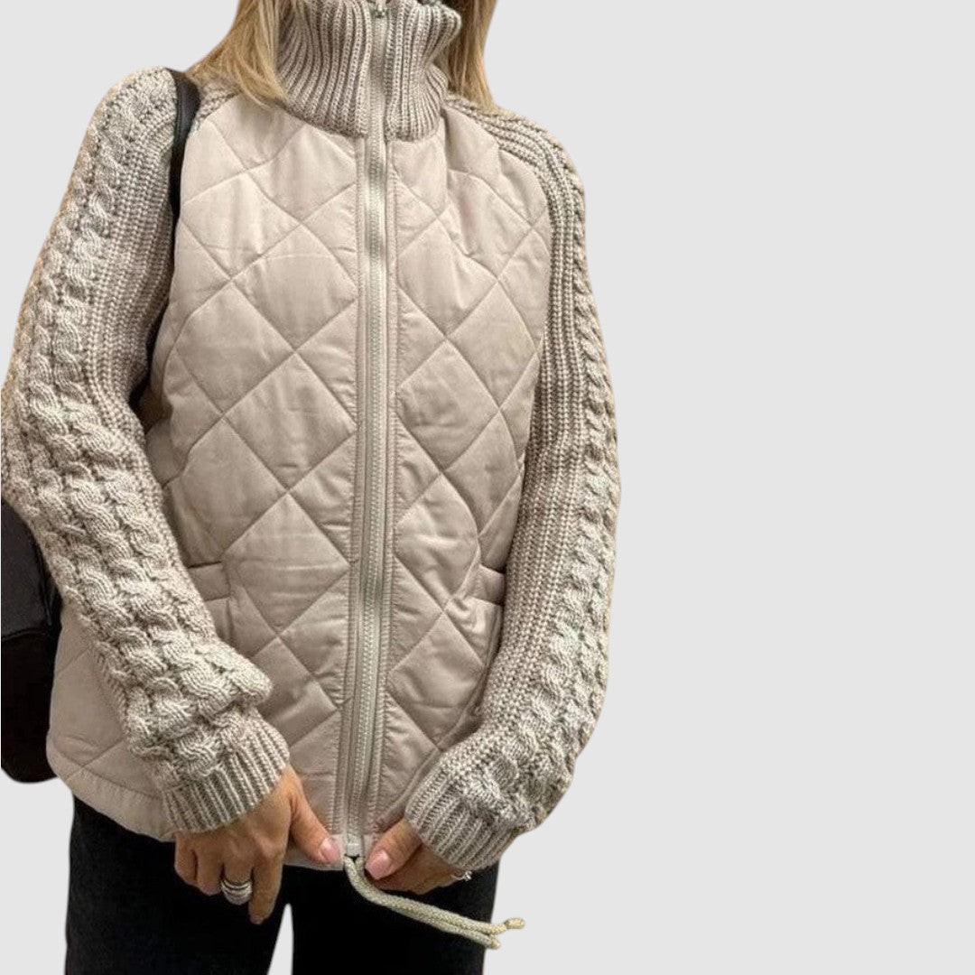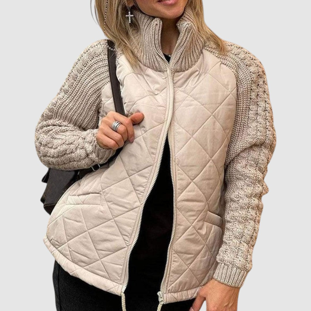 Hybridní Bunda s Prošívaným Tělem a Pletenými Rukávy